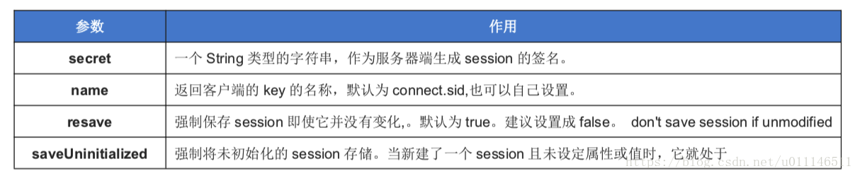 四、express-session 的常用参数: