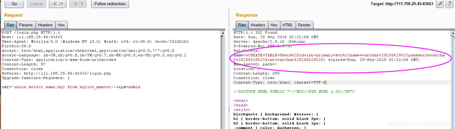 然后在 logined.php中点击GETFALG抓包,把username 和 csrftoken改为刚才获得的值