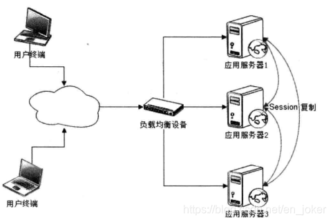 Session复制是早期企业应用系统使用较多的一种服务器集群Session管理机制。应用服务器开启Web容器的Session复制功能,在集群中的几台服务器之间同步Session对象,使得每台服务器上都保存所有用户的Session信息,这样任何一台机器宕机都不会导致Session数据的丢失,而服务器使用的Session时,也只需要在本机获取即可。如下图所示。