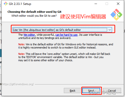 第六步:按照默认路径即可,直接点击 Next ,进入下一步,进入“选择Git使用的默认编辑器”窗口