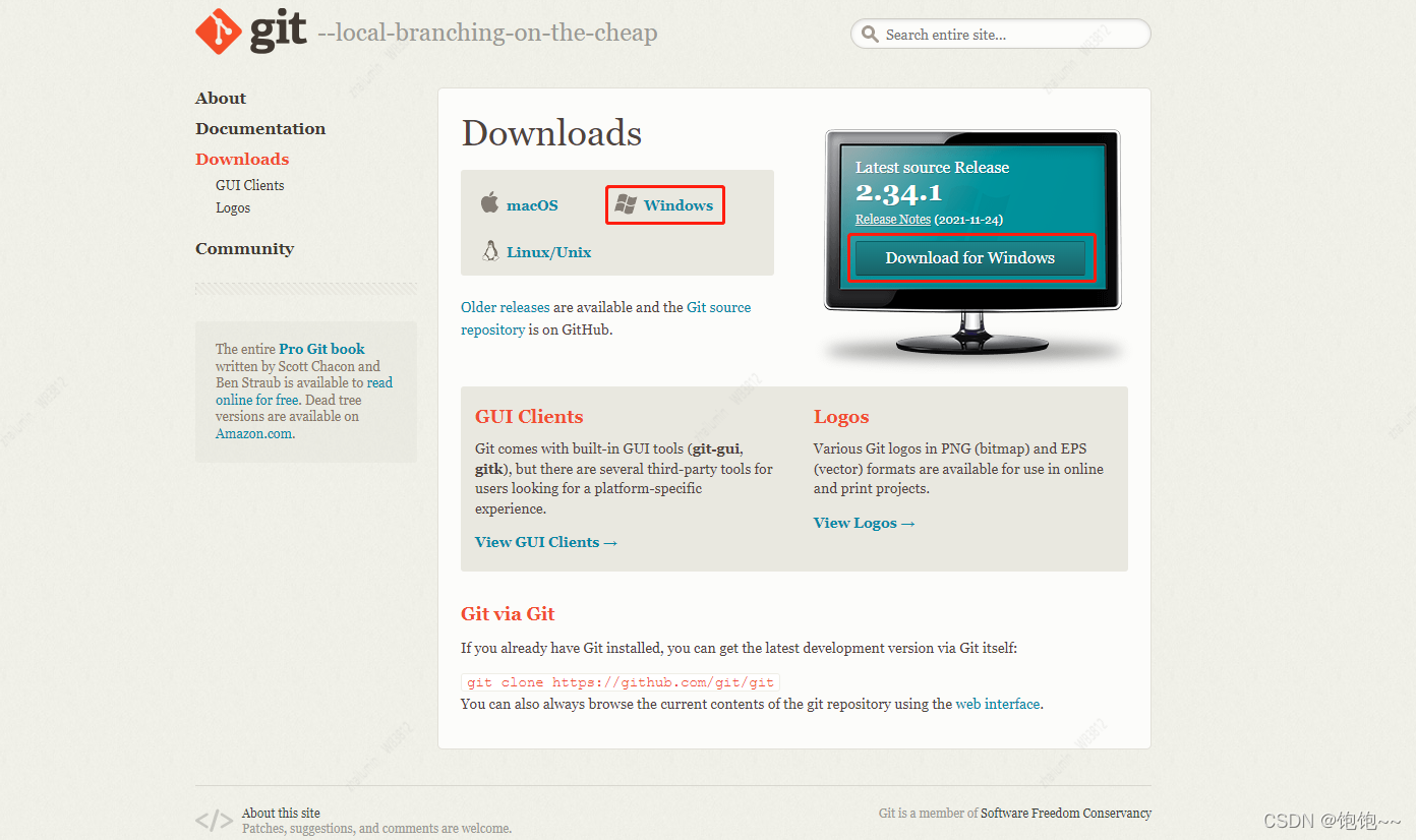 官网地址:Git - Downloads