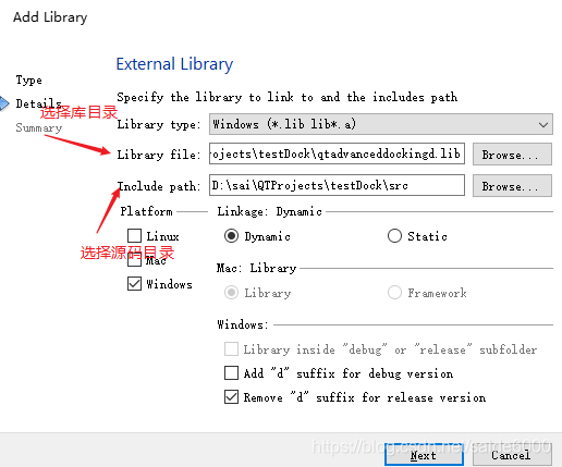 从Debug文件中可以找到qtadvanceddockingd.lib和qtadvanceddockingd.dll两个文件,因为是Debug模式,最后一个字母带了个“d”,和Release模式有个区分。
