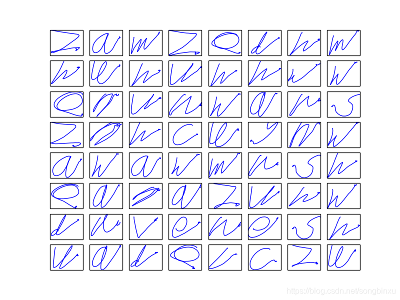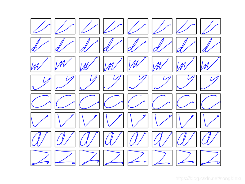 CharacterTrajectories数据集是小写英文字符轨迹的数据集,包含20个类’a’ ‘b’ ‘c’ ‘d’ ‘e’ ‘g’ ‘h’ ‘l’ ‘m’ ‘n’ ‘o’ ‘p’ ‘q’ ‘r’ ‘s’ ‘u’ ‘v’ ‘w’ ‘y’ ‘z’。每个样本是一个时序序列,有三个维度,分别是 x x x轴坐标、 y y y轴坐标和笔尖力度。作者将所有样本都进行了截断或补零,统一变成长度为182的序列。样本进行了一阶差分处理,需要通过累积(cumsum)来恢复原本的坐标轨迹。
