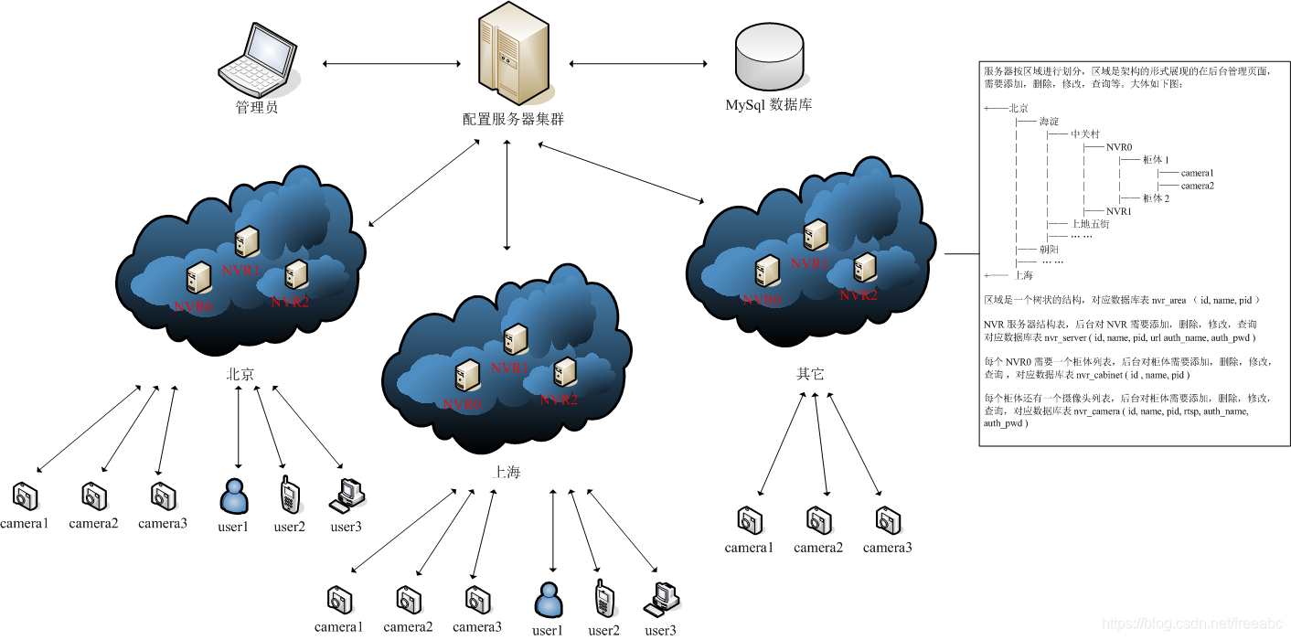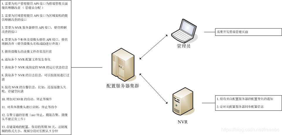 这是一个 NVR 云项目,支持对前端摄像头的录像文件的云存储,以及后台录像文件的管理,主要是权限分配,增删改查等操作,前端通过 Resetful API 接口,