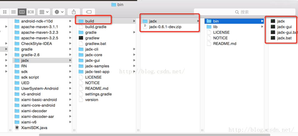 - bin/jadx -d out classes.dex # 反编译后放入out文件夹下(如果out不存在它会自动创建)