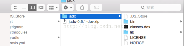 在编译成功后,在jadx目录下,会生成一个build目录,其中包含jadx目录和一个jadx-xxx-dev.zip的打包文件。在build/jadx目录下,就是源码编译出的jadx工具及所用jar包。jadx-xxx-dev.zip解压后的内容与build/jadx内容一样,只是将其打包了一下而已,方便移值,可见作者有多用心。build目录结构如下图所示: