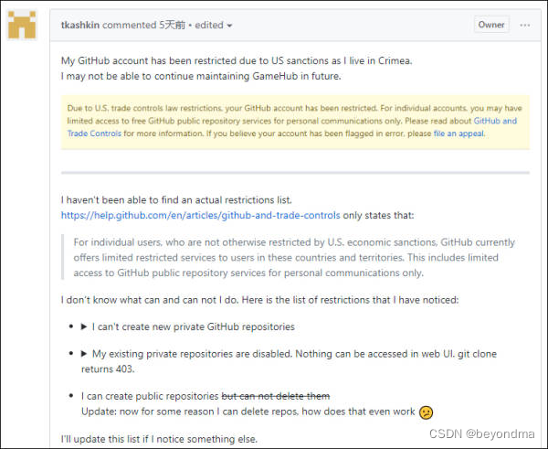 虽然最后确定这只是一起乌龙事件,被限制使用的仅限于HashiCorp的加密软件。不过这一事件开了一个比较坏的头,因为基础软件方面的开源项目一旦实施替换成本非常大。标志着开源也有走向限制、封锁的可能,而且目前俄罗斯、克里米亚、伊朗的GitHub用户的账号,也都遭到了网站官方的限制。所以我们这种照搬式的开源,只知其然却不知其所以然的模式,未来也可能会面临断供的风险。