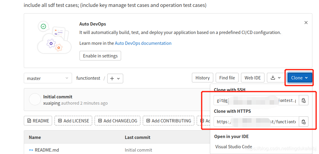 然后在本地git clone git@gitAAA:test/functiontest.git