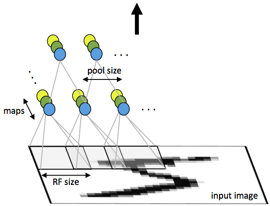 之后,每个(特征)图通常在 p×p <script type="math/tex" id="MathJax-Element-18">p \times p</script> 的相邻区域进行平均值或最大值下采样(译者注: CNN <script type="math/tex" id="MathJax-Element-19">CNN</script> 中的下采样即池化),对于相邻区域 p <script type="math/tex" id="MathJax-Element-20">p</script> 的值范围从