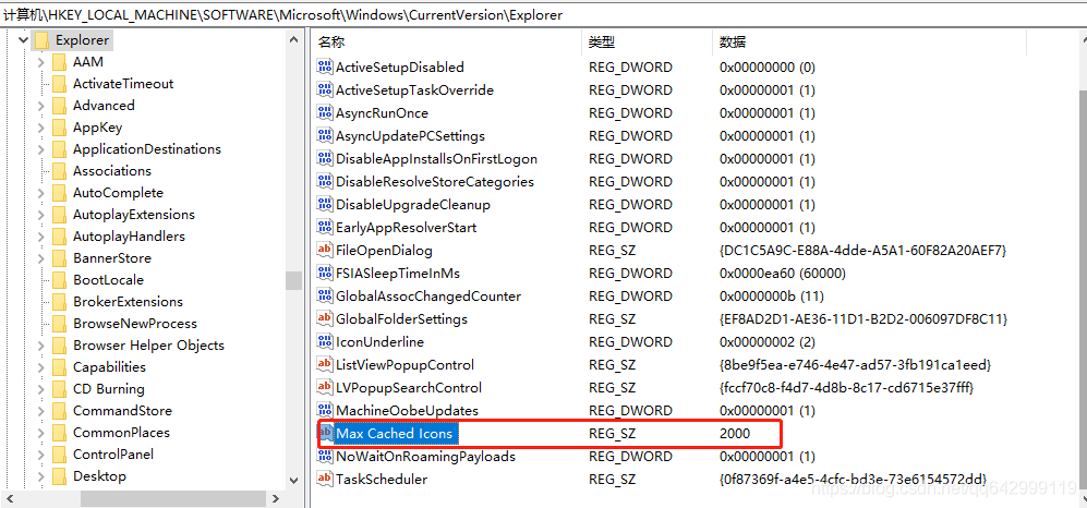 如果Max Cached Icons存在就检查数据的值,如果不存在就新建一个字符串,填写数值2000