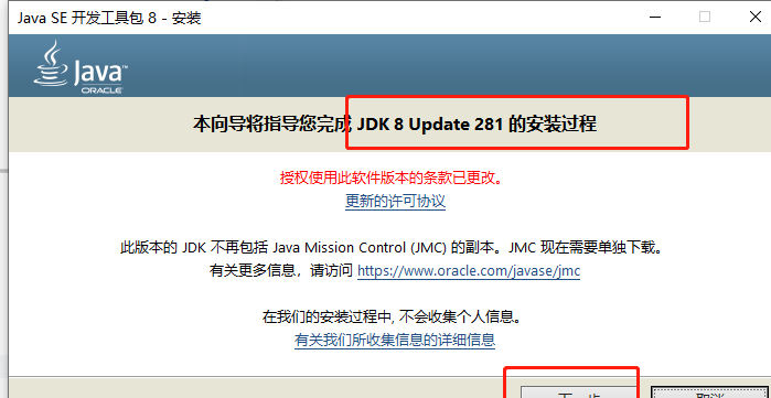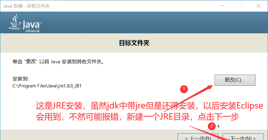 之后会提示安装jre,同样把jre的默认目录修改到D:\Software\Java\jre1.8.0_281