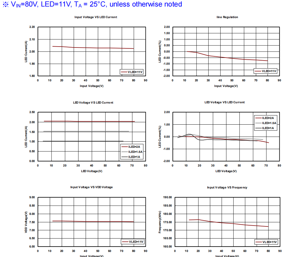 FP7195最大占空比可达100%,所以在操作时候输入电压可以几乎等于LED电压(电路元件会有压降・所以不会输人电压等于ED电压)・当输入电压低于LED电压后FP7195会让MOS全开・当输入电压掉低于LED电压后输出しED电流会跟着往下降。一旦输入电压高于LED电压后可马上回复正常恒流输出。
