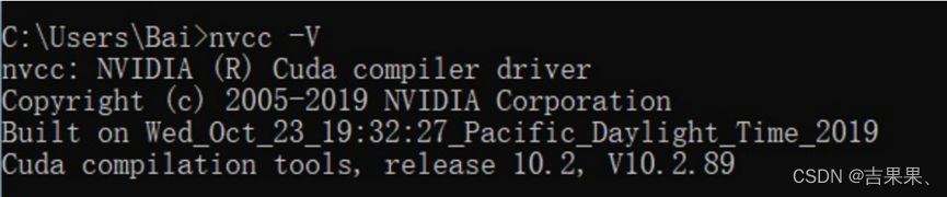 Win+R打开CMD终端执行:nvcc -V 即可看到cuda的信息: