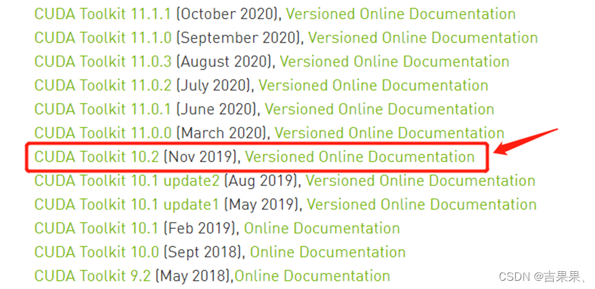 CUDA各版本官方下载地址: CUDA Toolkit Archive | NVIDIA Developer