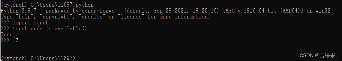 1、此时我们已经激活并进入到所创建的mytorch环境中。