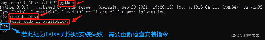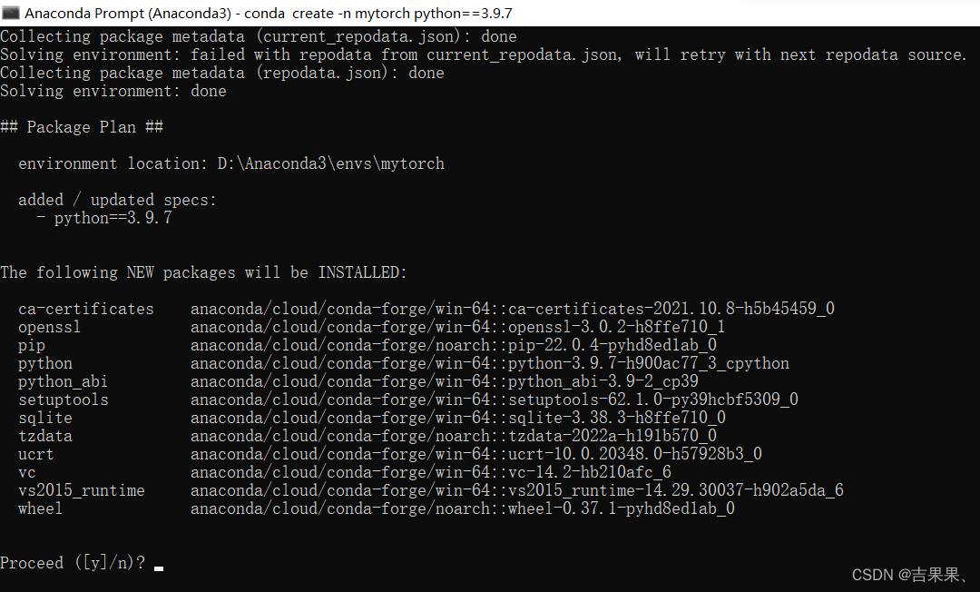 可以根据自己需要修改,例如:conda create -n mytorch python==3.9.7