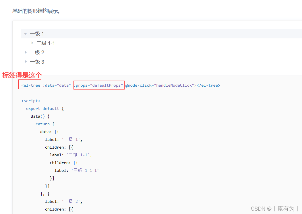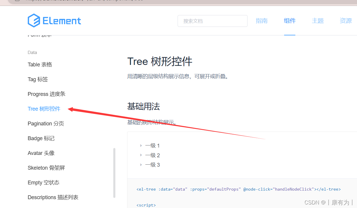 在学习树形表格之前,肯定得先搞懂普通的树形组件是怎么搞的,然后将其套到表格中就好了,请参考ElementUI官方文档中的使用方法