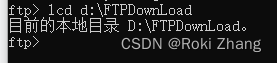【mget *.* → 回车】 ,将 FTP 服务器上 HIS 目录下的文件下载到本地【d:\FTPDownLoad】