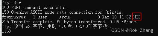 【dir → 回车】,可以看出这个目录下面只有 HIS 一个文件夹