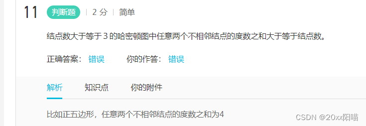 3.若图中每一对不相邻的顶点的度数之和不小于顶点数,则图是哈密顿图。不满足不一定就不是比如