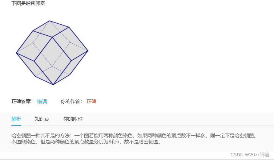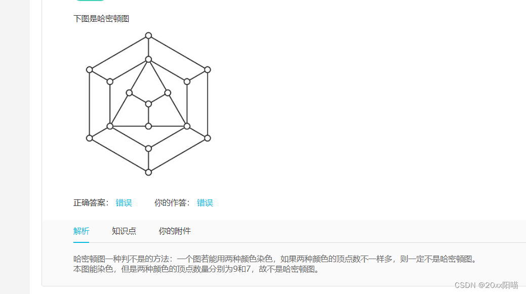 1.如果一个图的顶点可以用两种颜色染色,那若结果染完两种颜色的顶点数量不一致,则一定不是哈密顿图;但满足一致,不一定就是哈密顿图。