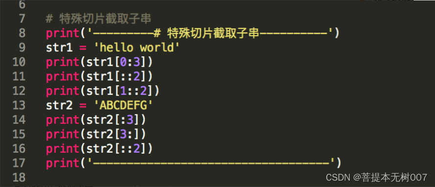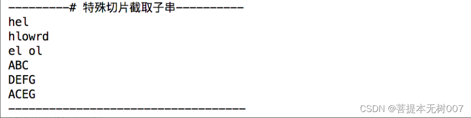 print('---------# 特殊切片截取子串----------')