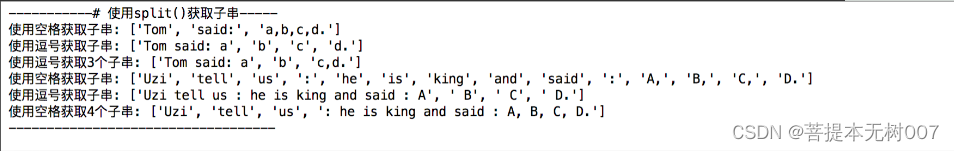 print('-----------# 使用split()获取子串-----')