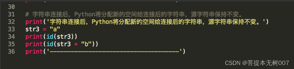 # 字符串连接后,Python将分配新的空间给连接后的字符串,源字符串保持不变。
