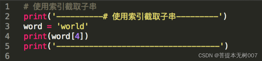 print('----------# 使用索引截取子串---------')