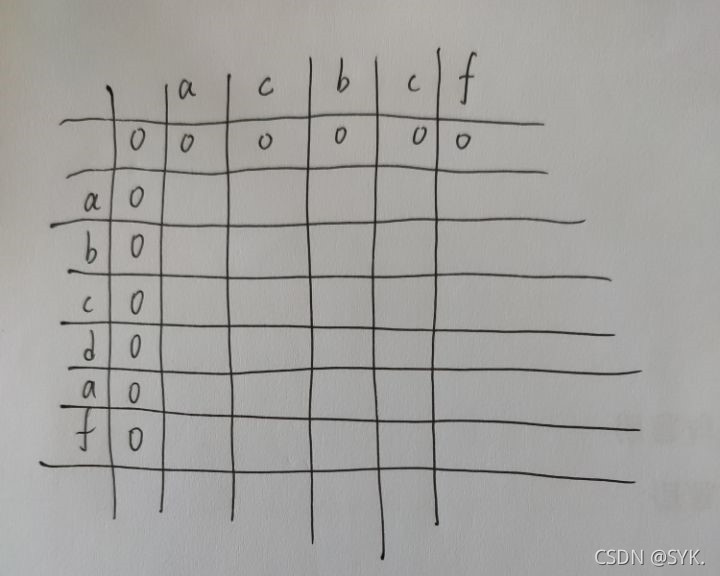 操作起来就是按两个字符串的长度分别为长+1和宽+1,构造一个二维数组用来存放结果,初始时要将此方阵的最上面的行和最左面的列全部填0;