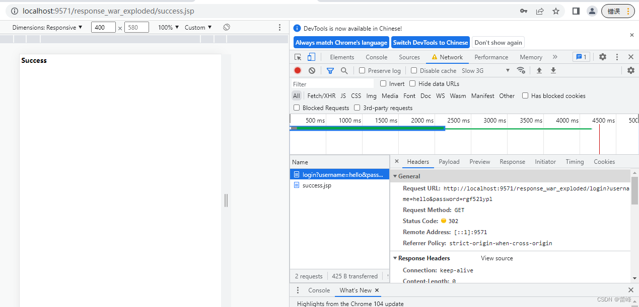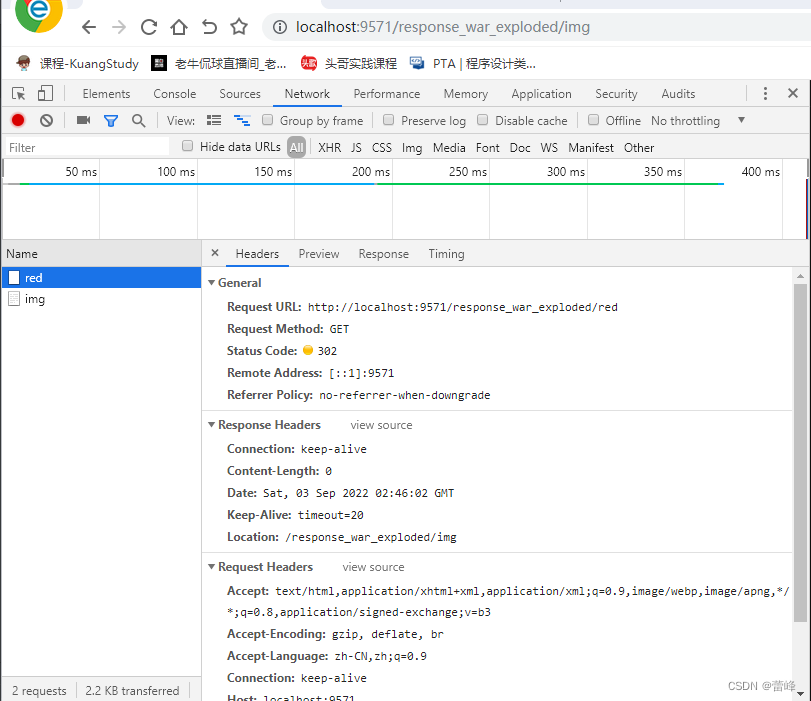 我们发现状态码为302,我们知道状态码以3开头的都为重定向的意思。重定向到Location,为/response_war_exploded/img。