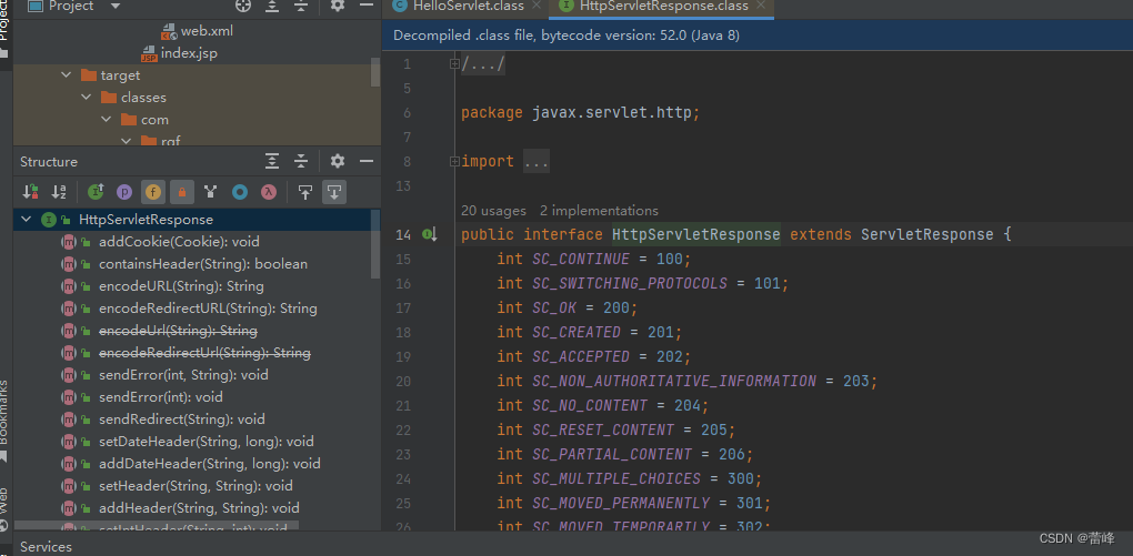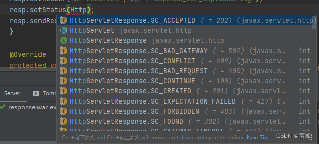 我们随便选择一个,之后按住ctrl,点击HttpServletResponse,进入界面之后找到302的编码: