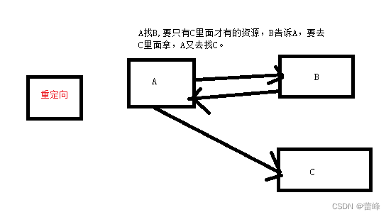 重定向:客户端访问一个地址,服务器返回一个新的地址,让客户端重新去访问这个新的地址。