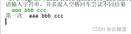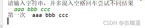 尝试输入:空格aaa空格bbb空格ccc回车
