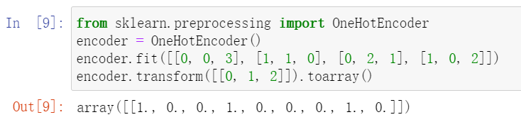 Sklearn提供了一个编码器OneHotEncoder,用于将整数分类值转换成独热向量。