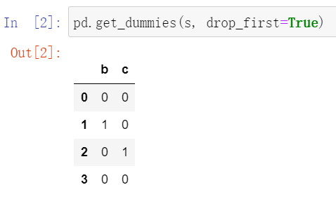 drop_first: bool, default False (获得k中的k-1个类别值,去除第一个)