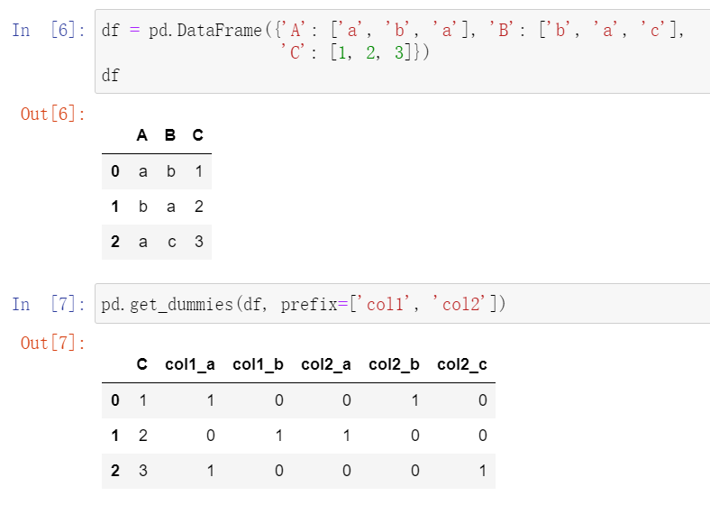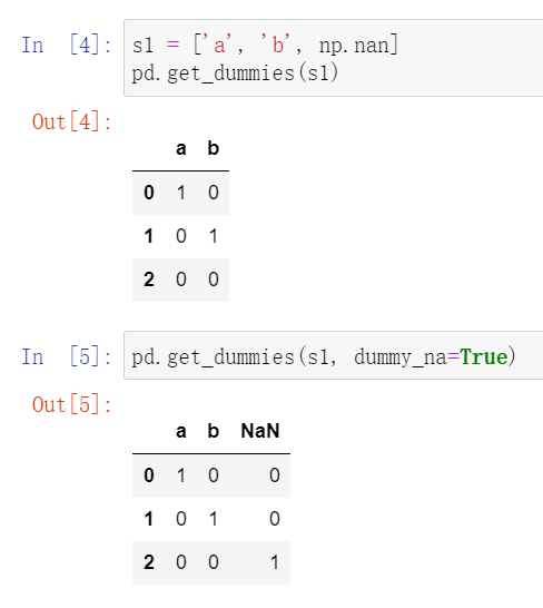 dummy_na: bool, default False(增加一列表示空缺值,如果False就忽略空缺值)