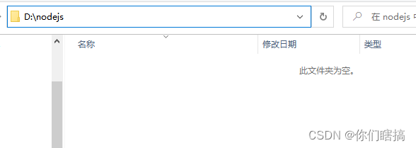 2.在合适的位置新建一个空的文件夹(英文路径,文件名称可读性高),用于存放等一下安装的node和npm相关文件。