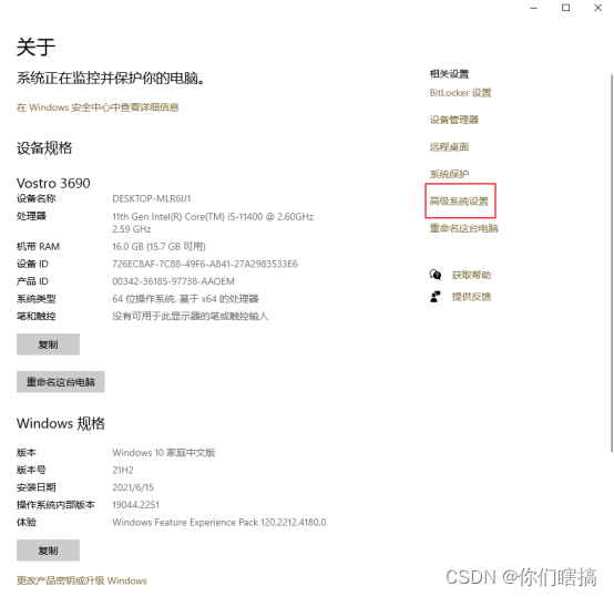 5.查看默认环境配置,同时按下win+R这两个键,在输入框中输入control system,点击确定。