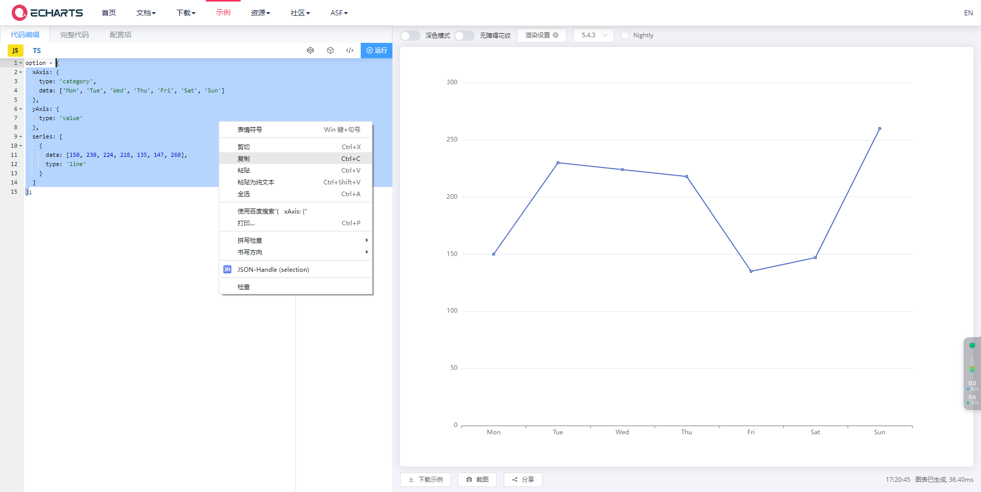 官方的示例大全中,其实还有非常非常多各种各样的复杂图表,所以呢,我们想要什么图表就可以直接复制它的option