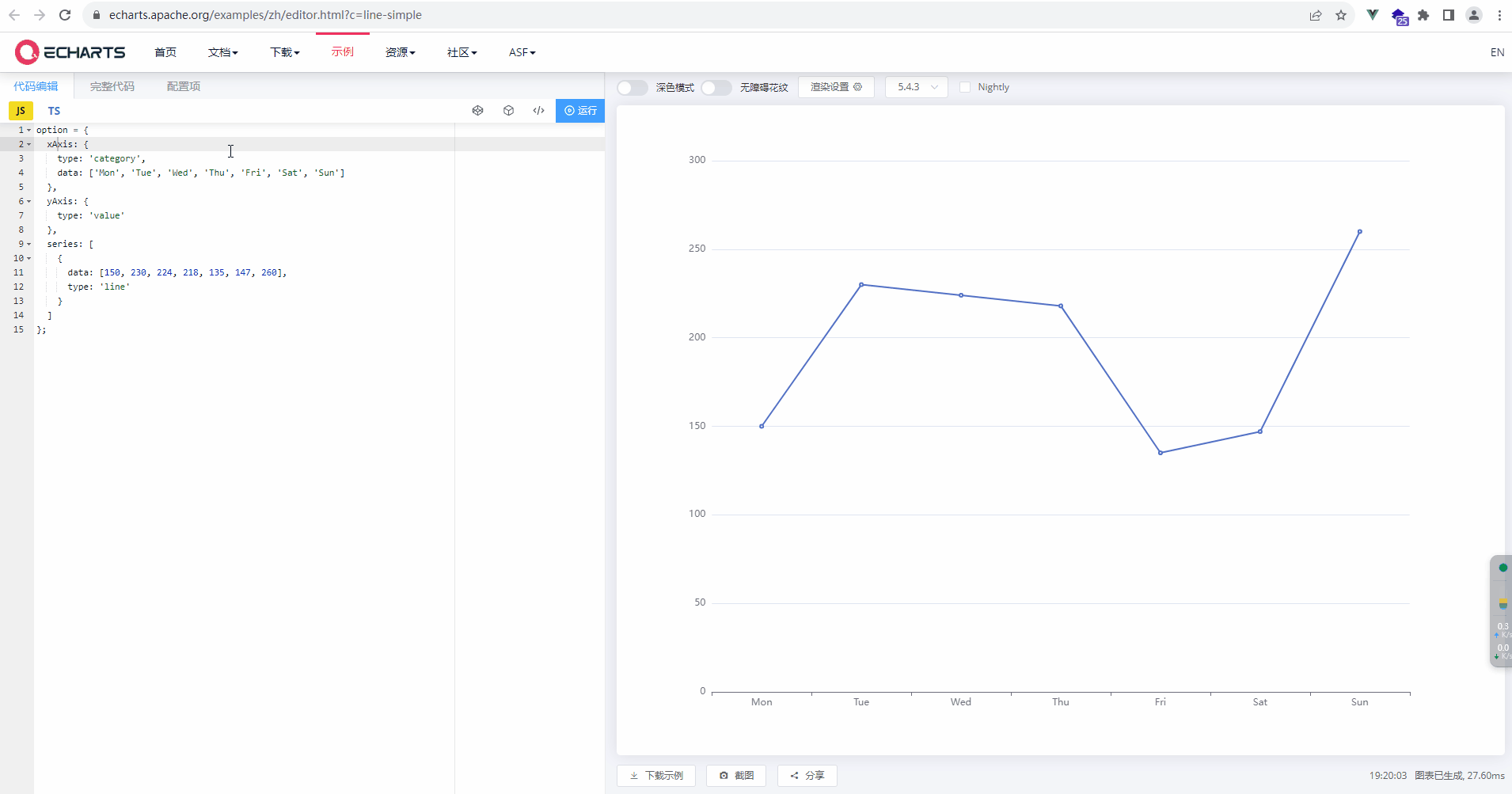 📈从一开始的例子中,我们实现了一个最简单的图表,而从echarts
