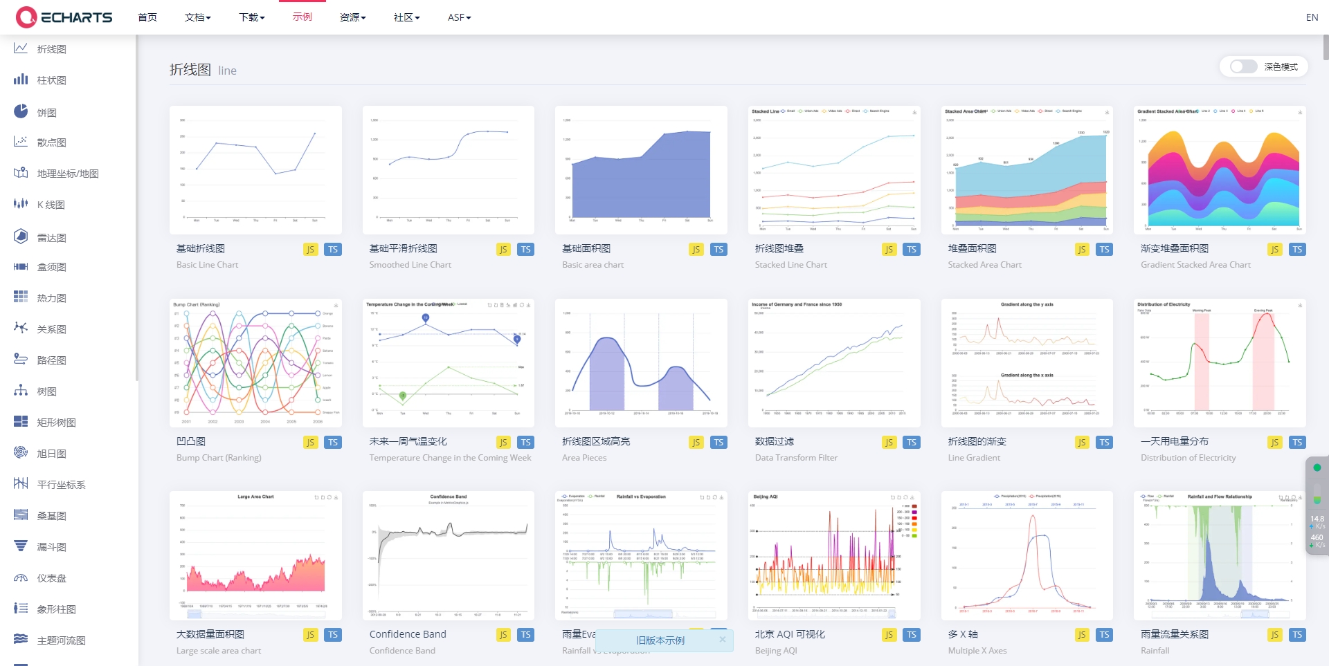 ⚡按照本文章的步骤,最终可实现官方的各种图表(非常简单暴力)。