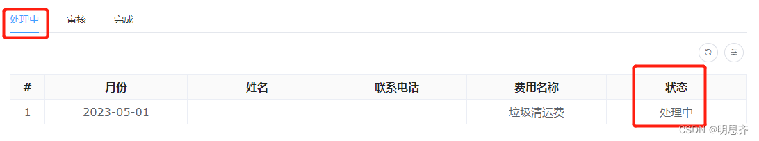 📚 根据需求来设置不同标签页中展示的字段,例如上图,处理中 我不需要展示工费工时和总收费,故,我可以根据选中的状态值来设置字段的显隐。