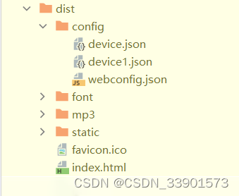 开发的过程中其实不太理解这是为什么,但从 npm run build 编译后生成的 dist/ 才能更好的理解为什么会这样。如下图,打包后的 vue 工程,config.json 是在根目录下的,没有 public 目录。