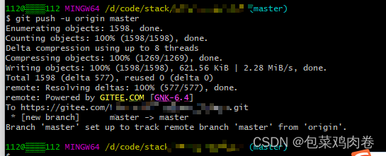 6.输入git push -u origin master,这是把代码上传到github仓库的意思