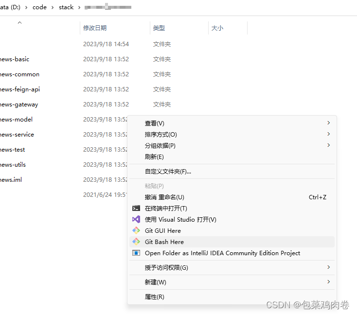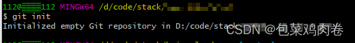 2.出现git命令框 输入git init 在当前项目的目录中生成本地的git管理(会发现在当前目录下多了一个.git文件夹)