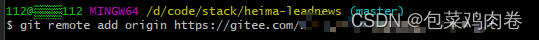 5.输入git remote add origin https://自己的仓库url地址 将本地的仓库关联到github上