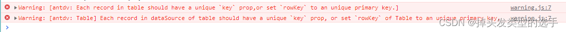 a-table将数据源默认将每列数据的key属性作为唯一的标识,添加的序号列没有key值,所以需要使用rowKey来指定数据列的主键。若没有指定,控制台会出现缺少 key 的提示。
