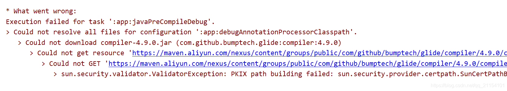 build了一会后,还是报错。看上去,是找不到glide,但点击链接,还是可以访问,好像又回到了故事的原点(抓耳挠腮中......):
